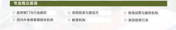 体育场馆设施及器材展区覆盖的专业观众范围包括: