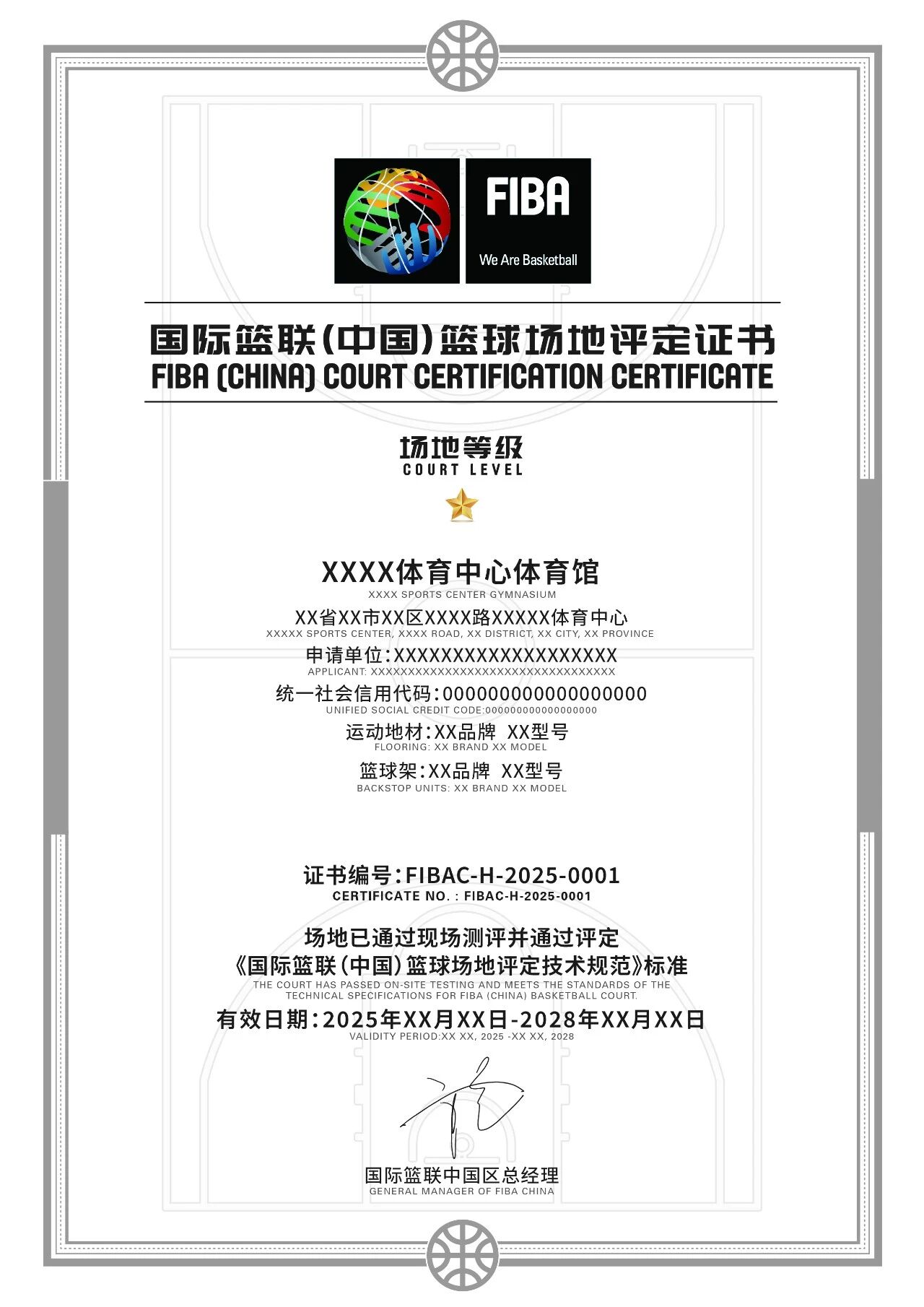 国际篮联(中国)篮球场地评定项目,是我们助力中国篮球基础建设迈向更高标准、更国际化的重要一步。获得国际篮联(中国)场地评定证书,不仅是对场地硬件设施品质的权威背书,更是场馆运营者追求卓越、致力于提供最佳篮球体验的体现。