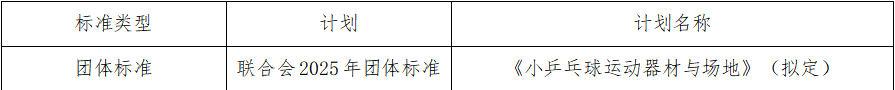 为更好的推动体育团体标准工作开展,根据中国体育用品业联合会《团体标准管理办法》规定,由中国乒乓球协会提出并主导实施的《小乒乓球运动器材与场地》团体标准,现公开征集参编起草单位,欢迎企事业单位参与标准的研制。具体项目见下表: