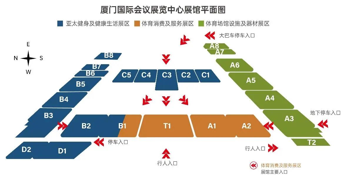 图|2026中国体博会展区规划,橙色区域为体育消费及服务展区