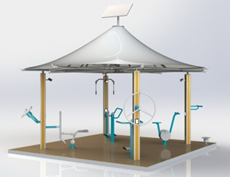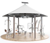 产品简介:本产品包含自洁膜结构、太阳能供电系统、10种运动功能的室外健身器材组合、智慧健身管理系统,使运动者不受天气、气候、昼夜的影响,向运动者用语音及动态图展示个性化的科学健身方案,同时还能采集器材实时使用情况。