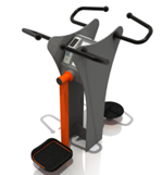 器材大量采用流线造型,外形美观。使用者手握摇柄摇动,产生动力,带动脚踏板上下振动。手摇转盘增强上肢肌肉力量,振动消耗腿部多余脂肪,疏经通络。显示屏可以显示使用者运动时长、速度,消耗卡路里,心率等数据,使运动过程具象化。