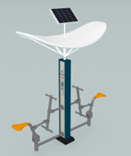 打造户外小型健身房,摒弃了户外传统单一的健身模式,既能满足锻炼需求,还可促进人们的沟通交流。该驿站于2017年12月份年完成研发并定型量产,驿站内配置有LCD显示屏、充电位、蓝牙音响等智能化设备,采用太阳能供电,让户外健身更环保、更智能、更科学、更有趣。