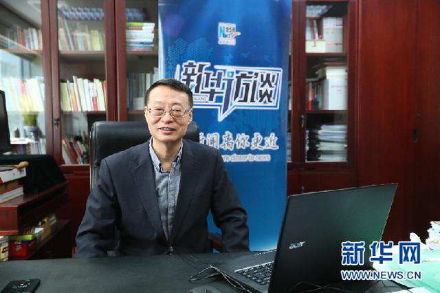 国家体育总局经济司司长刘扶民连线新华访谈。新华网 陈杰 摄