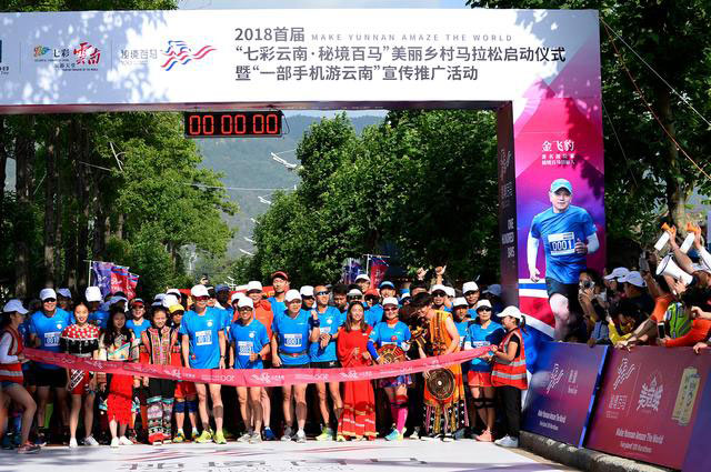 图为2018年5月19日“秘境百马”马拉松滇池开跑,参赛选手准备出发。 新华社发(谢子艺摄)