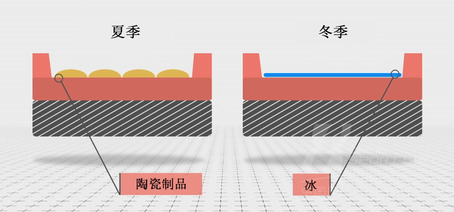 帕兹跳台雪场的跳台表面由陶瓷制成,通过集成的自动灌溉和冷却系统为运动员提供夏训条件。夏季,灌溉系统在陶瓷滑道表面注入水流,模仿滑雪板在冰面上的滑动;冬季,灌溉和冷却系统在轨道上形成恒温和稳定的冰层。如图1,运动员夏训时直接在陶瓷滑道上滑行,冬季则在冰面上滑行。陶瓷滑道与冰面滑道相同,也能在轨道末端提供理想的加速度,滑雪板在滑道上不会随意晃动,运动员不会产生不适感。