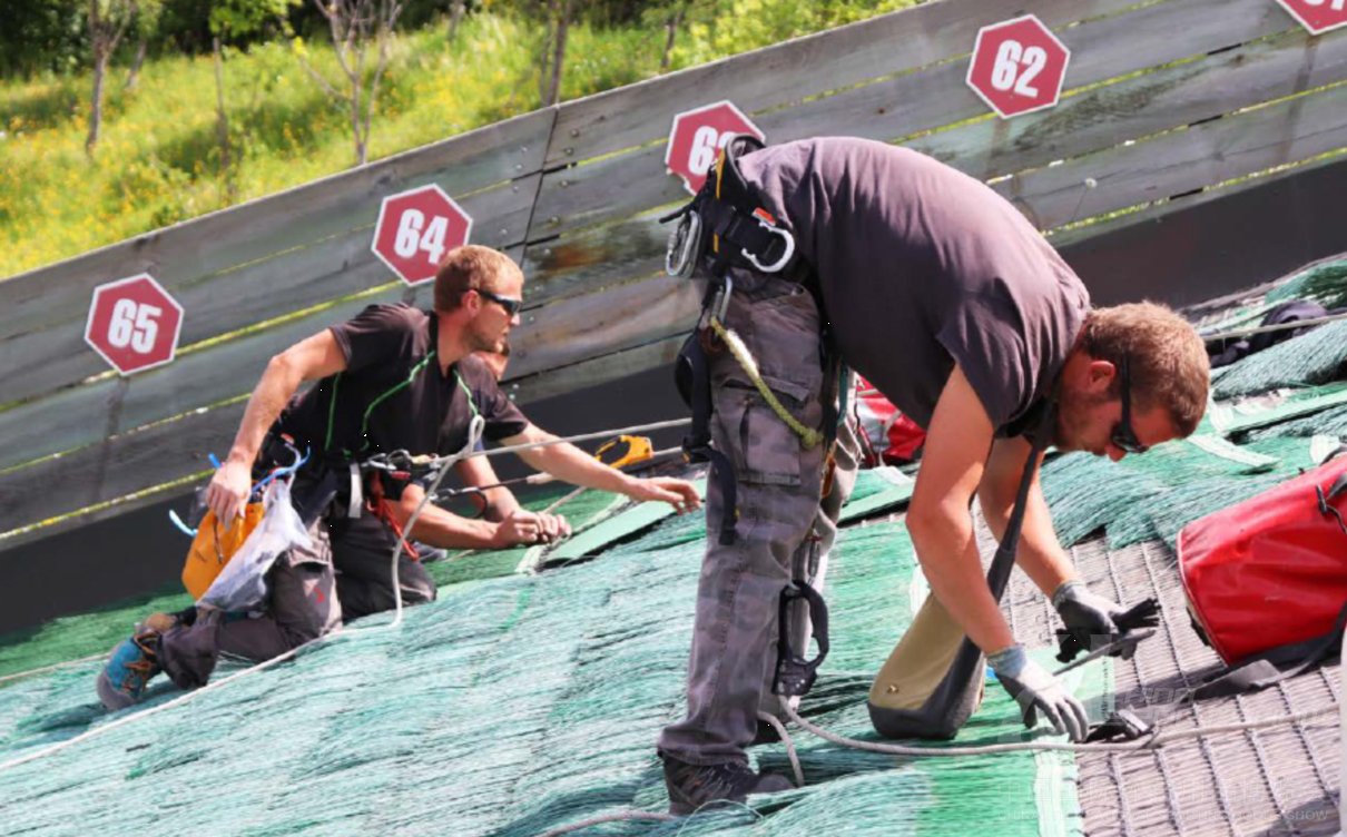 图2帕兹跳台雪场工作人员在斜坡上铺设塑料层