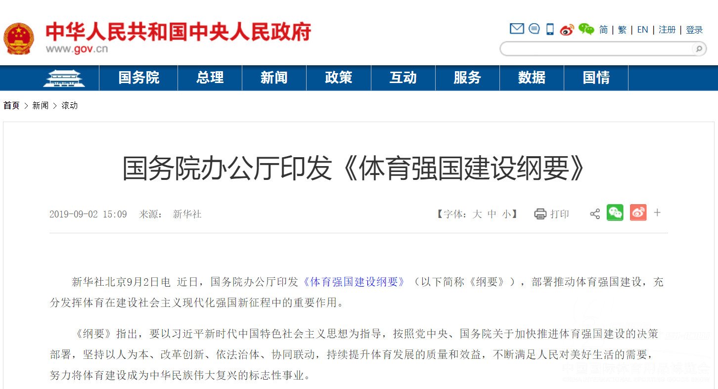 近日,国务院办公厅印发《体育强国建设纲要》(以下简称为《纲要》),为新时代的体育强国建设擘画了蓝图。在这幅蓝图中,三阶段战略目标、五大战略任务、九大工程项目和六大政策保障被细致准确地描画了出来。