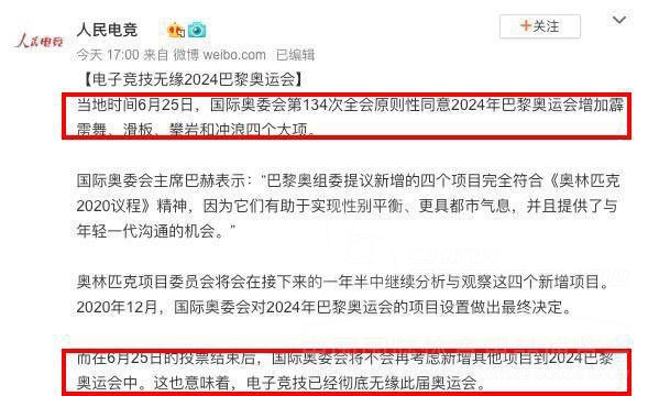 今年初,巴黎奥组委提议在2024年的奥运会上新增四个项目,包括霹雳舞、滑板、攀岩、冲浪,并没有电子竞技。