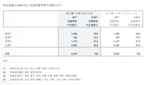 值得一提的是,361度今年至今门店数量却有所压缩。半年报显示,截至2019年6月30日,361度共开设5444间核心品牌门店,其中约73.9% 为独立街铺,相较于2018年底的5539间门店减少了95间,其中东部地区、南部地区分别新增92间、37间门店,西部地区门店数量未变化,北部地区门店数量增加了34间。